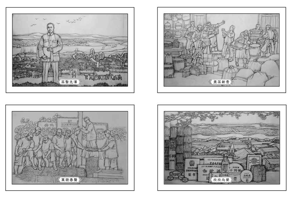 另外,臨千兩茶塔沿江風(fēng)光帶也有10塊浮雕,生動、形象、濃縮地刻繪了安化黑茶歷史淵源和白沙溪發(fā)展歷程。分別是“源遠(yuǎn)流長——嘉萬馳名——茶賢先澤——黑茶新秀——萬樹春聲——欣欣向榮——碩果累累——功勛名茶——黑茶地標(biāo)——代有傳人”。