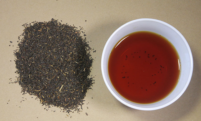 紅碎茶:短條狀緊實(shí),顯金毫,湯色紅亮,滋味濃強(qiáng)鮮爽。