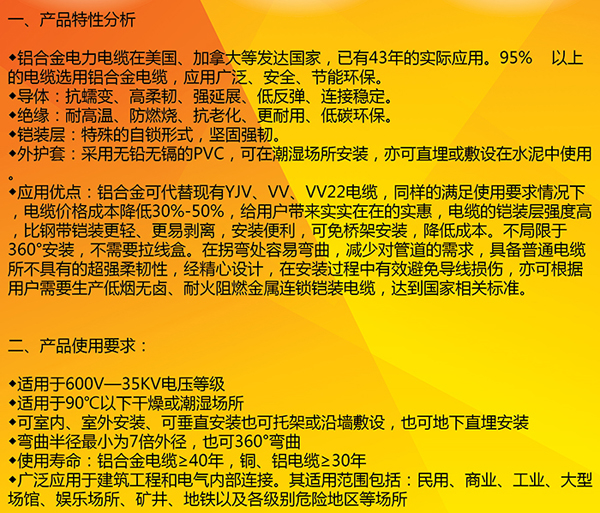 鋁合金電纜:鋁合金電纜ZR-YJLHV 瀏覽:3765
