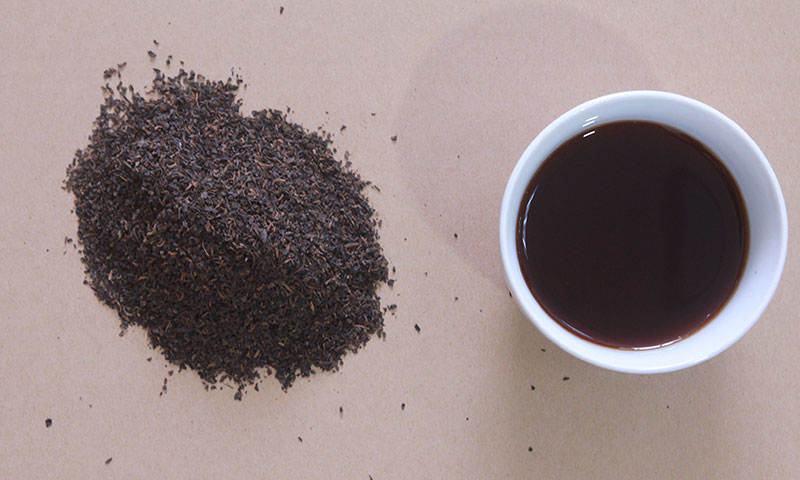 普洱碎茶:茶葉重實(shí),稍顯芽頭,湯色紅濃。