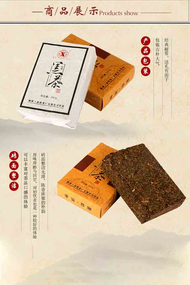 ??“湘益”茯茶均采用優(yōu)質(zhì)黑毛茶為原料,經(jīng)篩分投入拼配篩制—汽蒸渥堆—壓制定型—發(fā)花—干燥出烘—包裝入庫(kù)等工序精制而成,茶葉金花普茂,湯色紅濃,滋味醇厚,具有明顯的調(diào)節(jié)新陳代謝、降脂降糖功效。