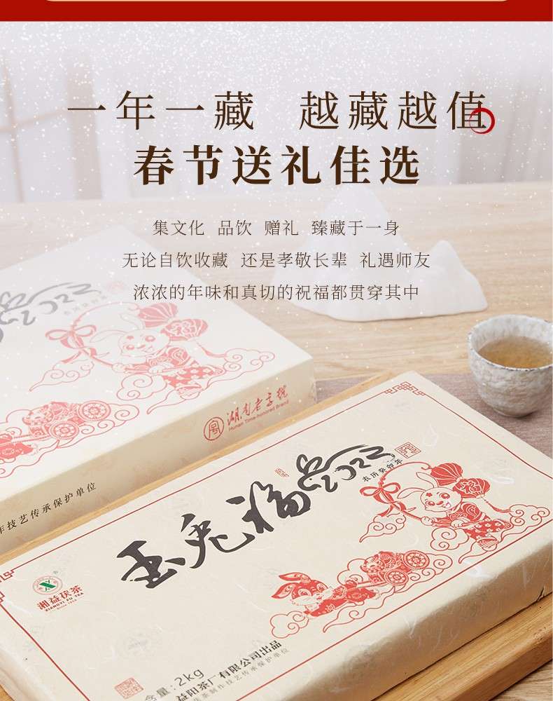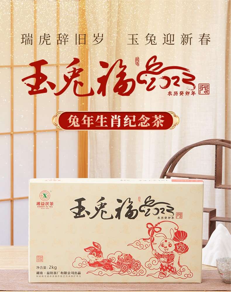 湘益獲茶2023年兔年生肖紀念茶玉免福2kg湖南正宗安化黑茶獲磚茶