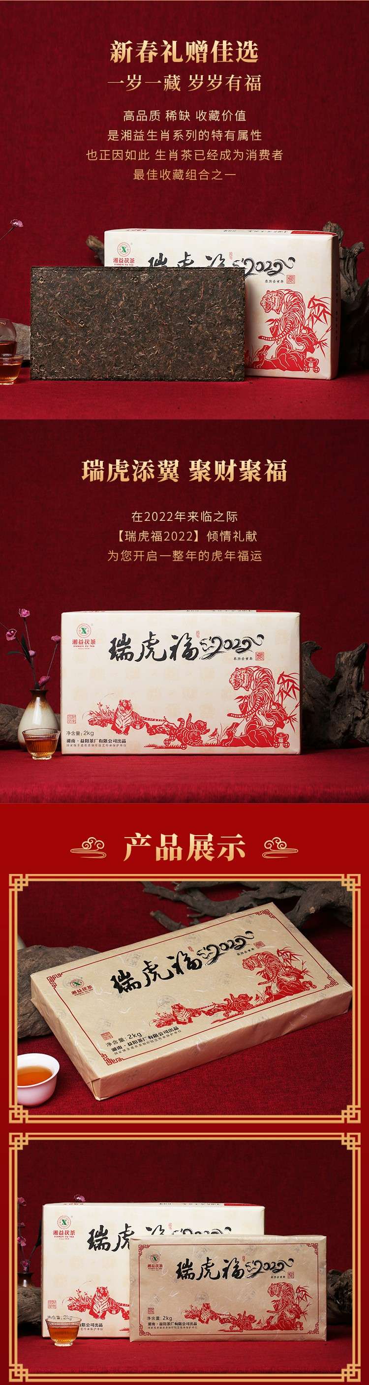 • 湘益獲茶湖南獲磚茶正宗安化黑茶2022新品虎年生肖茶瑞虎福2kg