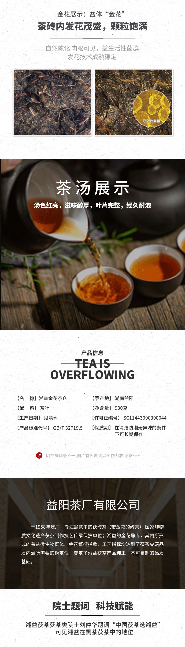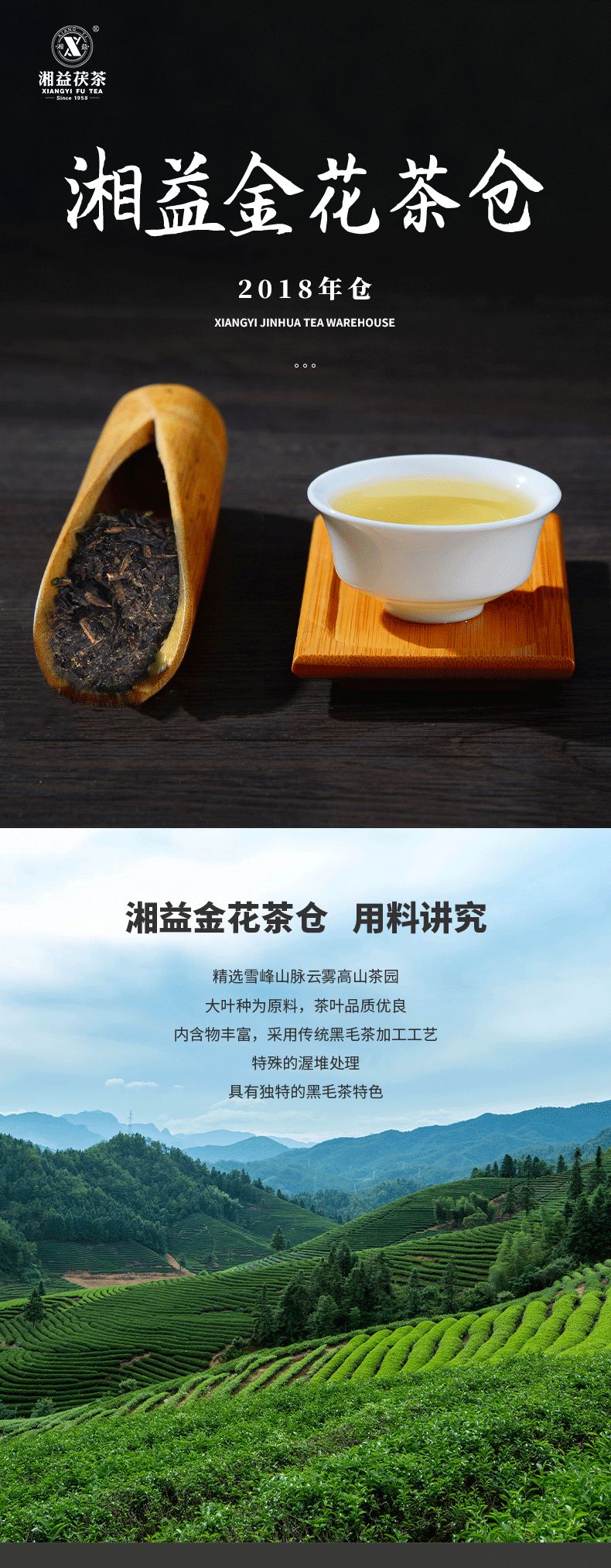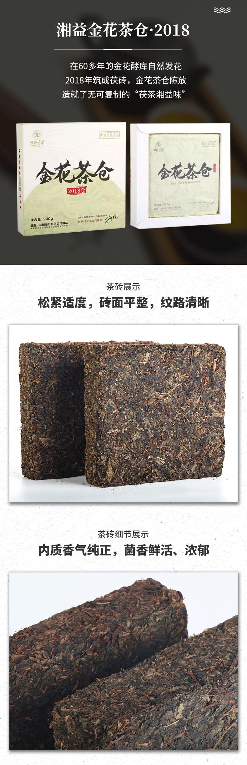 湘益金花茶倉2018倉茯磚茶930g