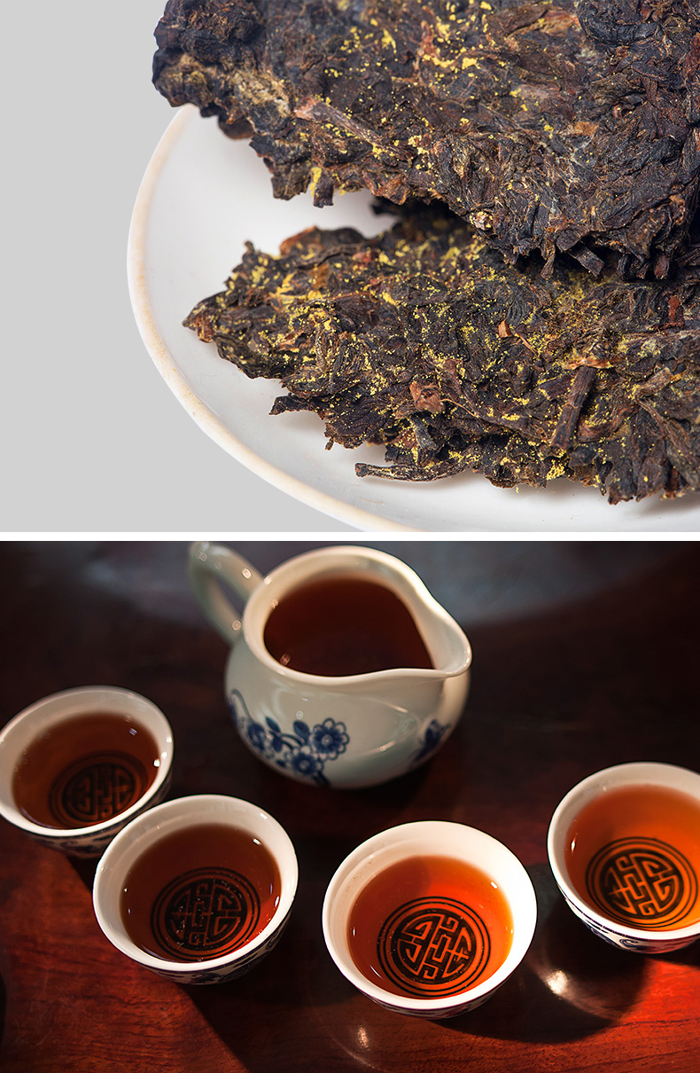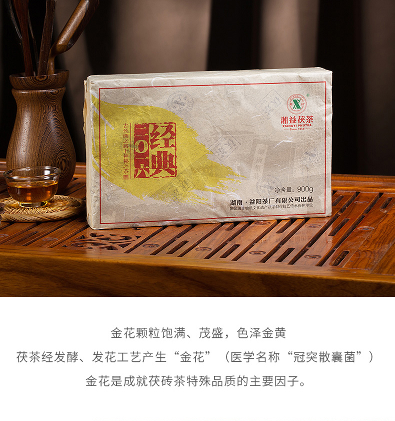湘益茯茶900g經(jīng)典2016金花茯磚黑茶