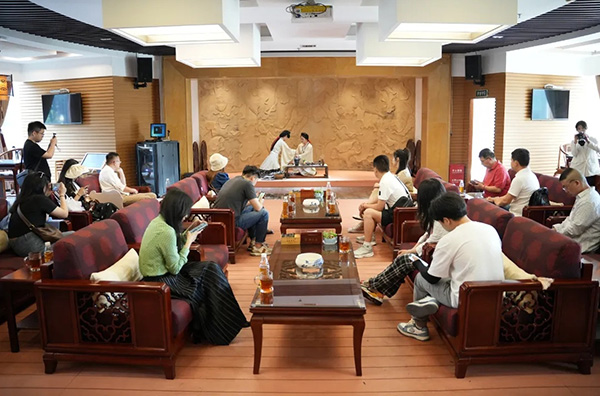 在長達(dá)2個(gè)小時(shí)的互動(dòng)時(shí)間里,大V達(dá)人為燦爛的湘茶文化所吸引,主動(dòng)當(dāng)起了湘茶宣傳大使。在金花酵庫,他們在詳細(xì)了解了輕輕茶、熊貓大叔等黑茶提取物產(chǎn)品的生產(chǎn)流程、保健機(jī)理等知識后,紛紛自覺為湖南黑茶代言,助力健康中國;在湖南省茶葉博物館,他們通過茶藝表演、茶園賞春制茶、博物館之旅、唐代煎茶、特色民俗茶飲—擂茶等沉浸式體驗(yàn),無不贊嘆湘茶文化的獨(dú)特魅力和博大精深,紛紛與工作人員添加交流方式,及時(shí)了解和宣傳湘茶文化;在茶守藝閃鋪,他們在品飲茶飲后,紛紛拿起冷泡茶、速溶茶、奶茶等產(chǎn)品與工作人員合影,打卡轉(zhuǎn)發(fā)微博,以實(shí)際行動(dòng)表達(dá)對產(chǎn)品的喜愛。