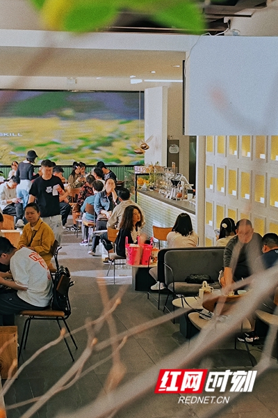 “我們提前就做好攻略,長沙的景點(diǎn)都要打卡,這會兒逛完太平街,來到茶守藝涂鴉墻這邊拍完照,就來喝杯茉莉奶綠,門口推出的茉莉花茶冰淇淋也很好吃。”從鄭州來的張同學(xué)和朋友們喝完飲品后,還仔細(xì)看了下伴手茶禮。據(jù)介紹,“五一”期間,該店日均人流達(dá)400人次,選購“湖南有好茶”系列伴手禮的比率達(dá)50%。